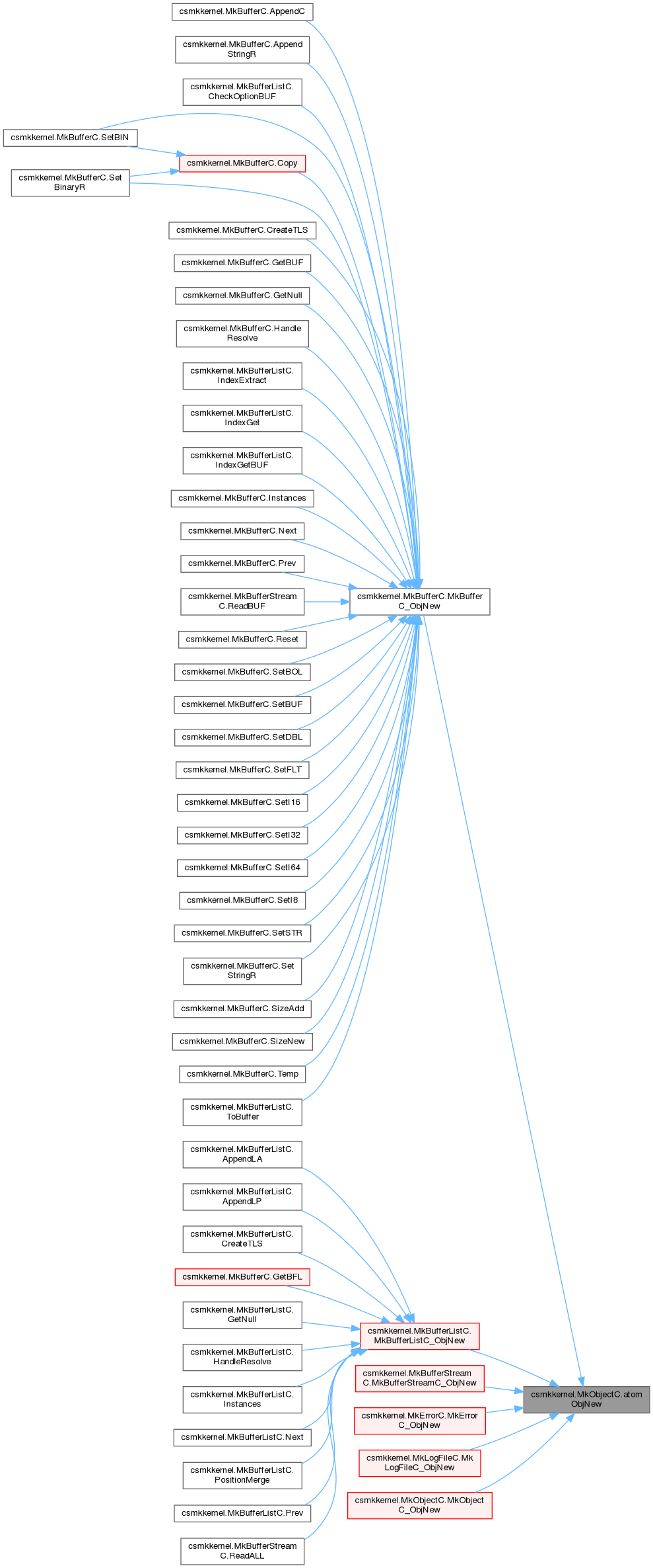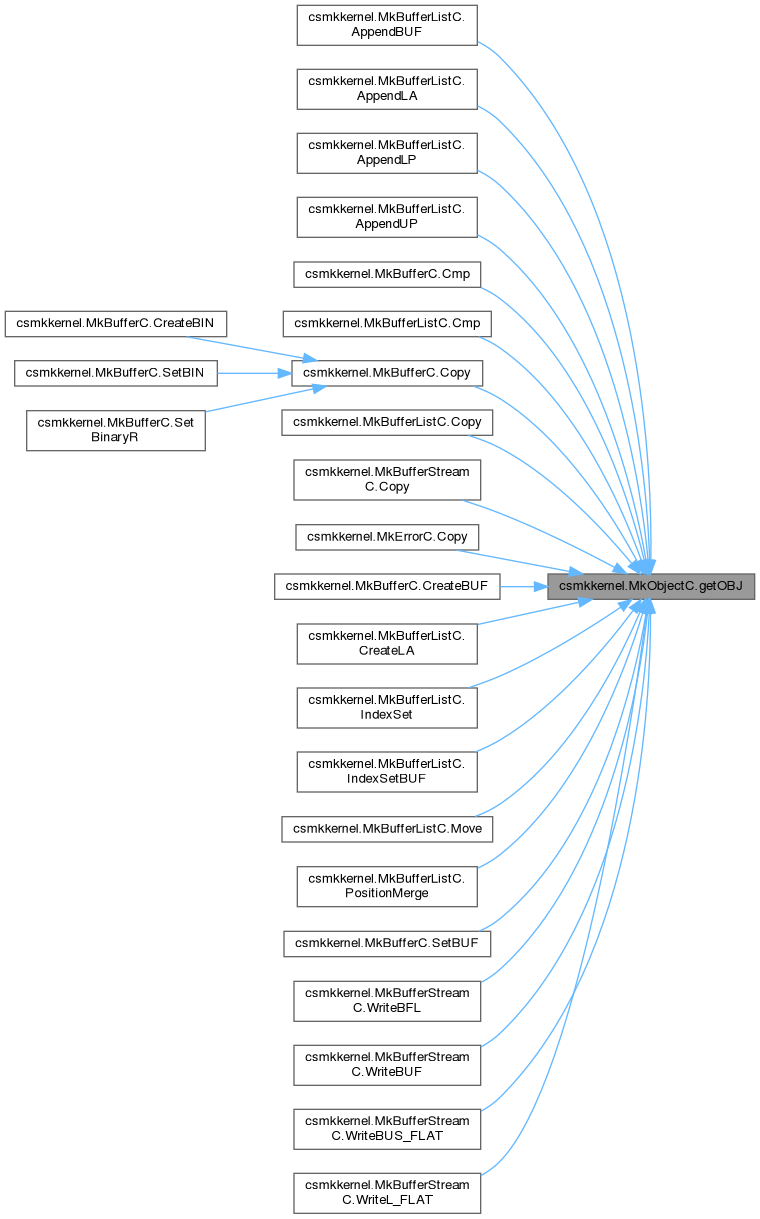 In the implementation-layer of csmkkernel only the public-features of the MkObjectC are visible to the programmer.