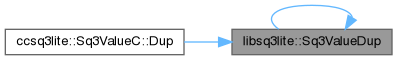 The Sq3ValueDup(V) interface makes a copy of the Sq3ValueC object D and returns a pointer to that copy. The Sq3ValueC returned is a protected Sq3ValueC object even if the input is not. The Sq3ValueDup(V) interface returns NULL if V is NULL or if a memory allocation fails. If V is a pointer value, then the result of Sq3ValueDup(V) is a NULL value.